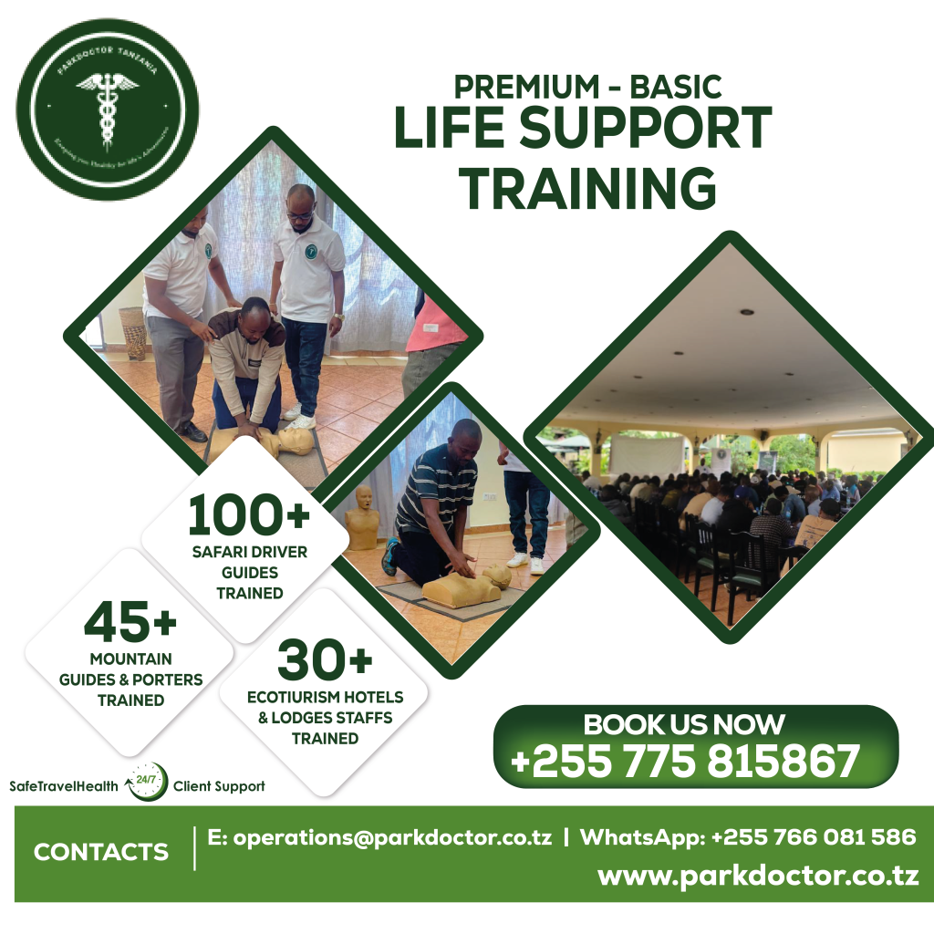 ParkDoctor of Tanzania conducted a multi-session training for Safari driver guides, porters and safari’s Hotels/Lodges Staffs focusing on: CPR and Emergency Response: Hands-on practice using manikins. Common Injuries Management: First aid for wounds, fractures, burns, transportation  and dehydration. Cultural Awareness & Health Practices: Promoting respectful, culturally sensitive healthcare delivery. Health Dialogue Session: Open forum for